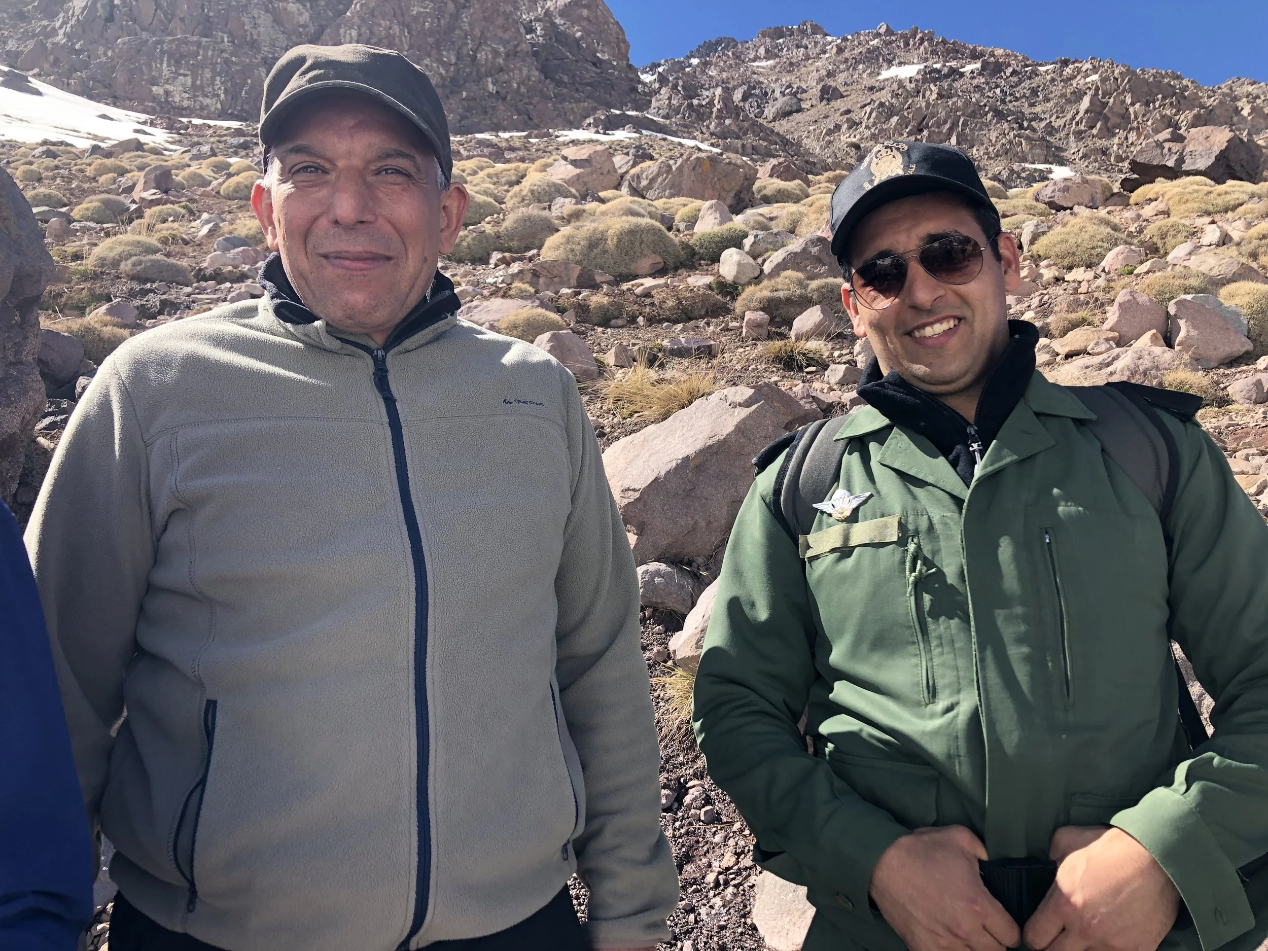 I fell into step behind Youssef and peppered him with questions about Toubkal, hiking, Berber culture. Toubkal is a popular destination and generally safe, but not everyone who attempts it is up for it, and not everyone who is up for it keeps safety in mind while hiking. He was kind of a school marm about safety, which was mildly annoying but totally understandable. Further up the trail, we heard helicopters flying overhead and then encountered several military escorts who were accompanying the governor of the province on a walk down from the refuge, where his helicopter had deposited him. The official visit to the mountain was meant to send a public signal about safety protocols and make sure that the guides (some certified, some not...) and hikers on Toubkal are following best practices.